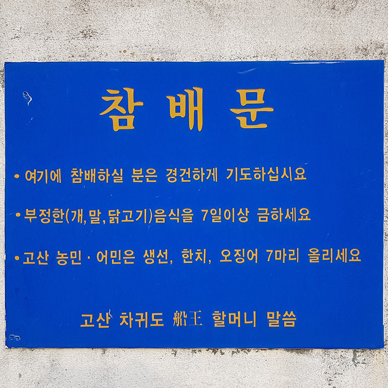 이곳에 기도갈때 주의해야할 사항이 입구에 적혀있다